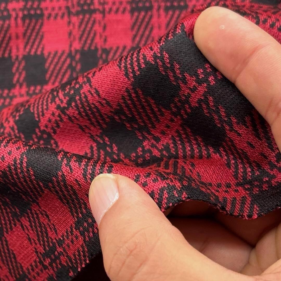 ★TB067◆2m◆ウールアクリル混タータンチェック生地◆レッド