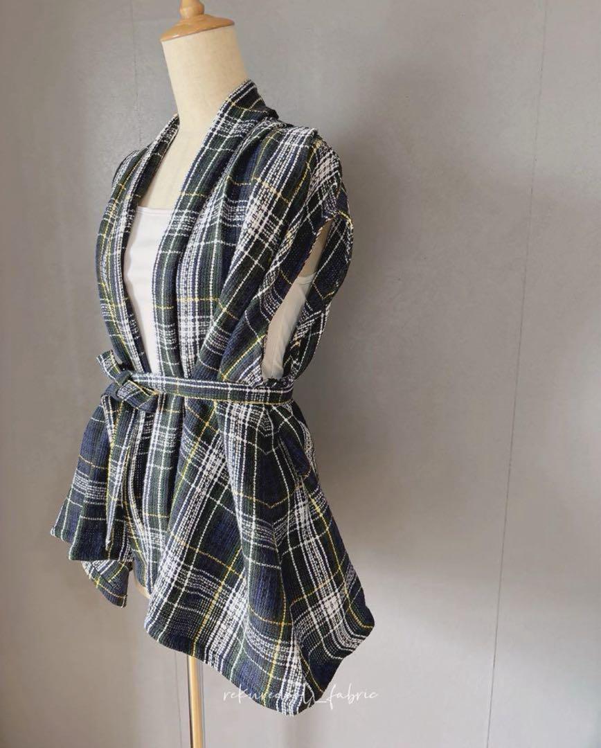 ★水通しする事により、繊維が多少柔らかい風合いになり、製作事例のようにショール風ジレやリネンのチクチク感が多少ありますので、インナーを着て、軽アウター等最適